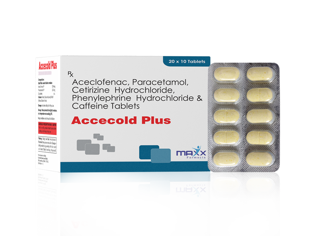 ACECLOFENAC, PARACETAMOL, CAFFEINE, CETIRIZINE HCL, PHENYLEPHRINE HCI TABLETS